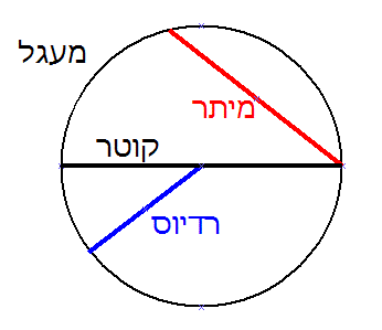 קוטר koter זה במעגל, שווה 2 רדיוסים