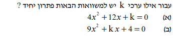 עבור אילו ערכי k יש למשוואה הבאה פתרון יחיד?