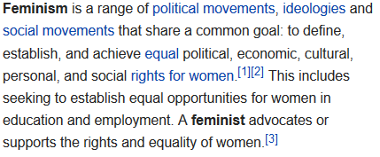 פמיניזם בדעתו אמור להיות שיוויון בין המינים.