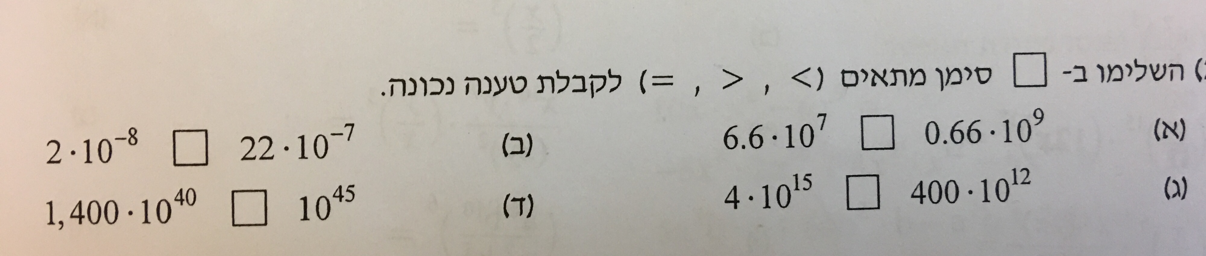 נראה לי זה לפני העשר ככל שהחזקה יותר גדולה ככה זה יותר גדול נגיד בסעיף ב יש עשר בחזקת 15 ועשר בחזקת 12 אז זה יותר גדול בחזקת 15