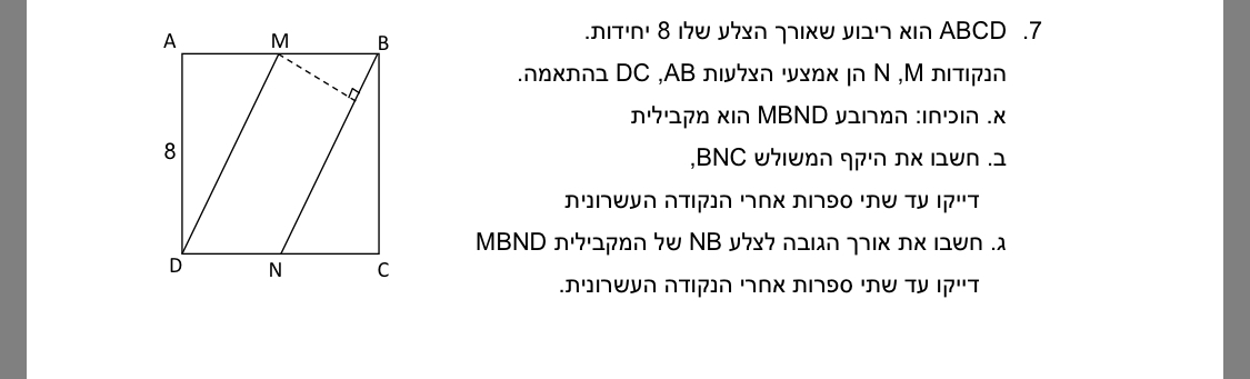 אוקיי אז באמצעות bc ו-bn או... nc ו-bn תמצאי את זווית nbc ואז 90-זווית nbc תמצאי את זווית mbn ואז בעזרת סינוס תמצאי את הגובה