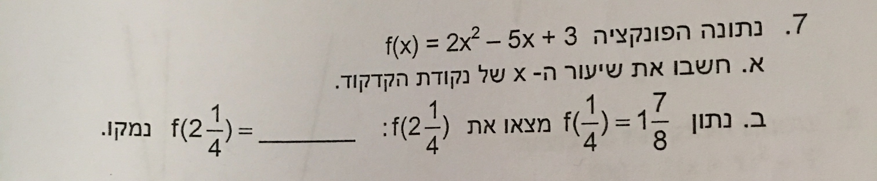 וב ב' את פשוט צירכה להציב את המספר שבסוגרים שנתנו לך שזה שתיים ורבע באיקס בפונקציה ומוצאת למה f של שתיים ורבע שווא