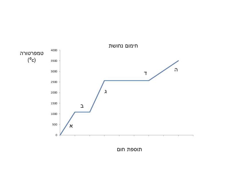 יש גרף שמתאר את השינויים בטמפרטורה של נחושת בזמן חימומה וצריך לענות על השאלות ואין לי מושג איך לפתור את השאלות