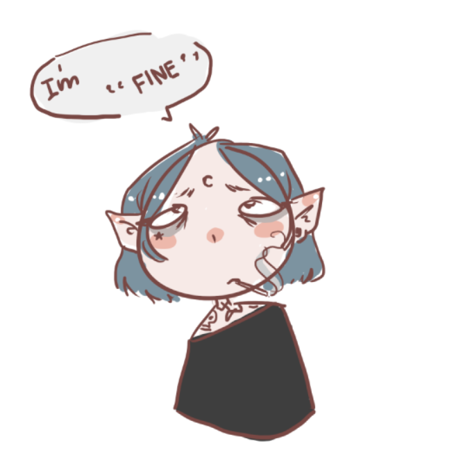 פרצוף של אישה עם אוזניי שדון, סיגרייה, קעקועים ונראת מתה (לא פיזית, נפשית