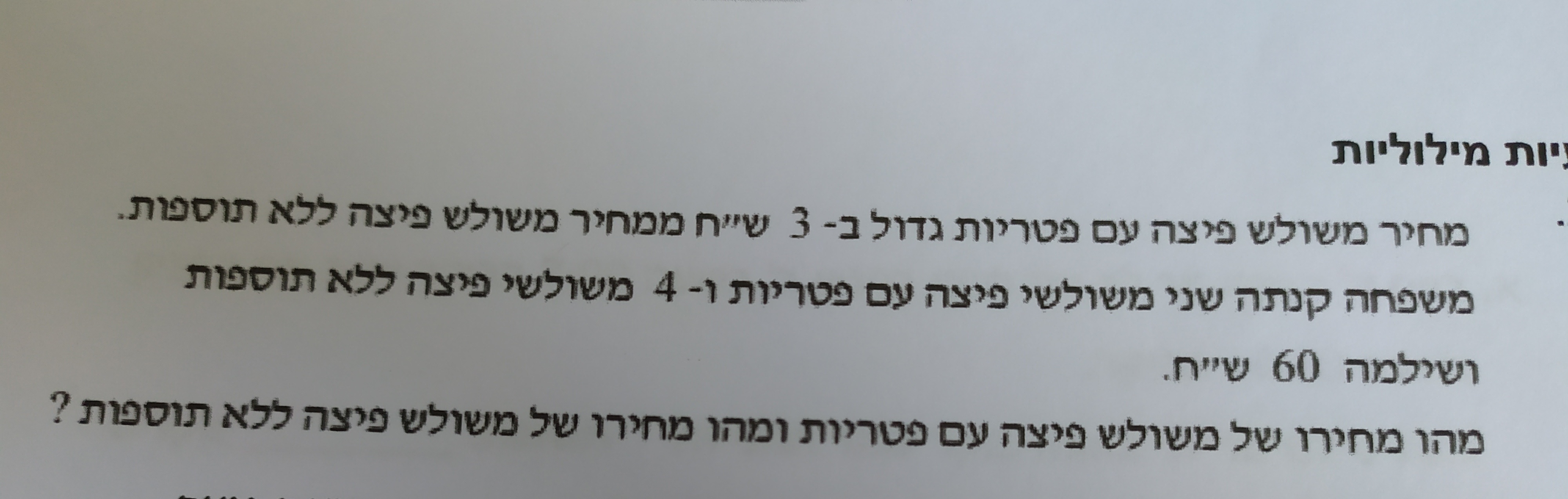 את יכולה לקרוא למשלוש פיצה בלי תוספת x ולמושלש עם x+3