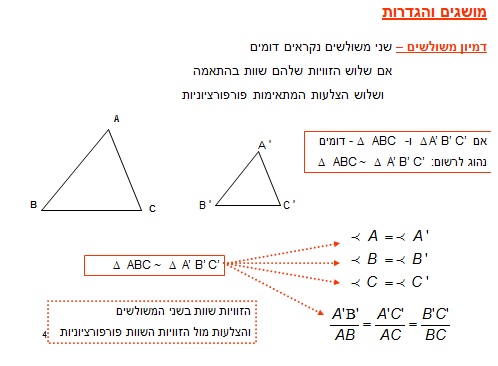 אם יש דמיון משולשים אז היחס יהיה בין הצלעות שדומות