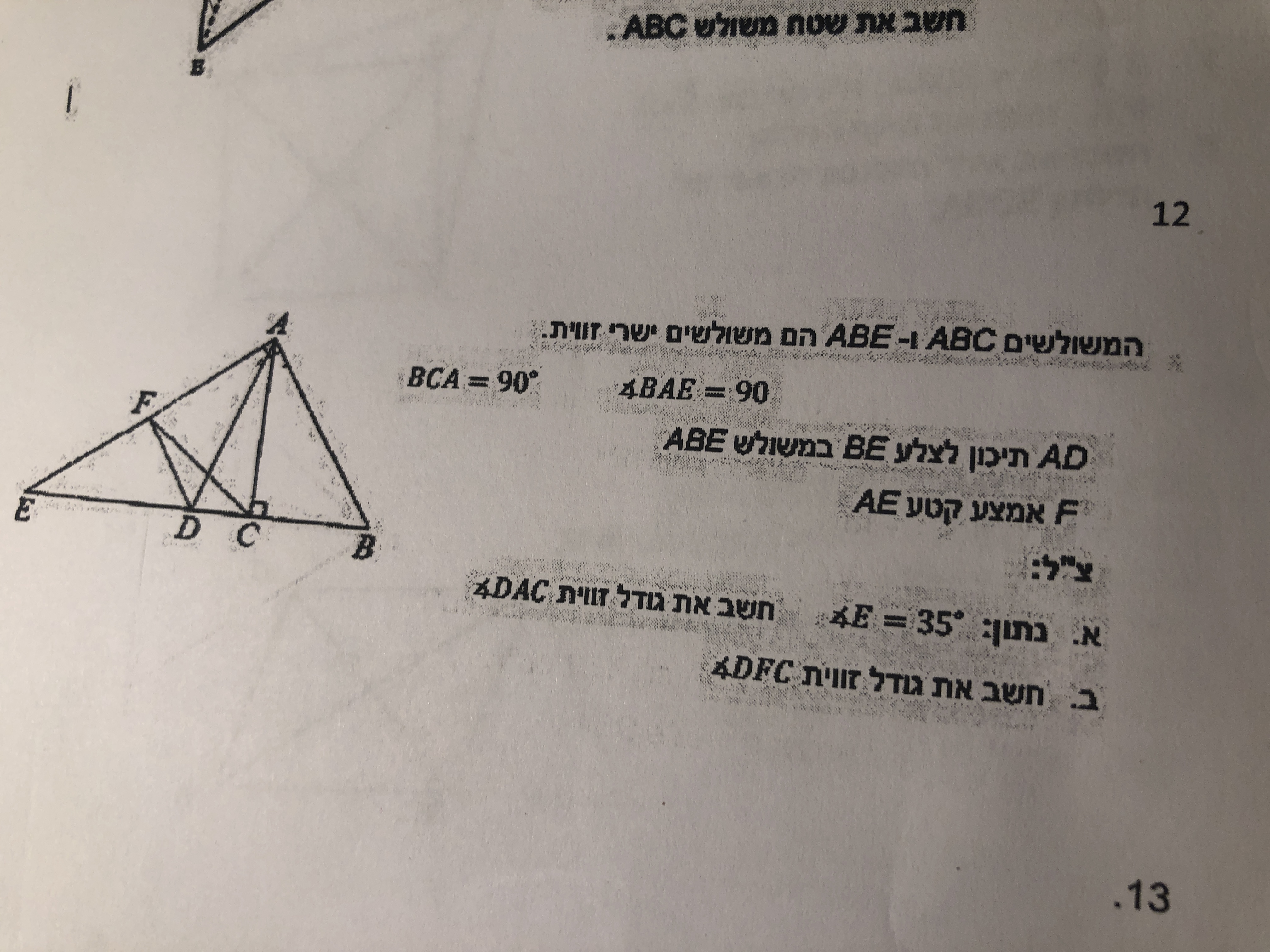 משולש fce ש"ש(cf = fe).