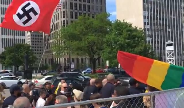 משמאל זה דגל הנאצים ומימין דגל גאוןה